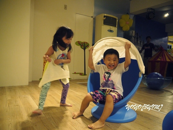 除了遊樂場外,這裡定時都會舉辦一些課程,今天有做黏土與說故事的課程,因為兩隻小鬼玩瘋了,沒有做黏土,就來聽故事吧!