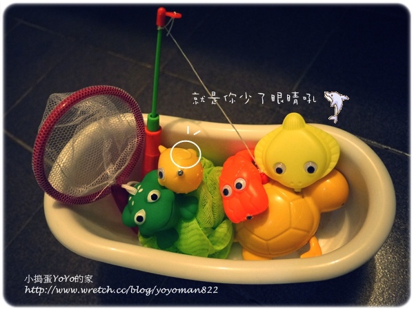 我跟yoyo說:「那好吧,我們把眼睛撿起來黏上去,又可以繼續釣魚了,好不好?」yoyo開心地點點頭,愛惜玩具的他,每一樣都是他的寶貝呢!