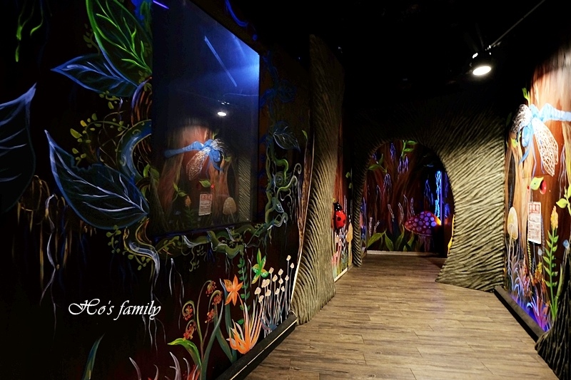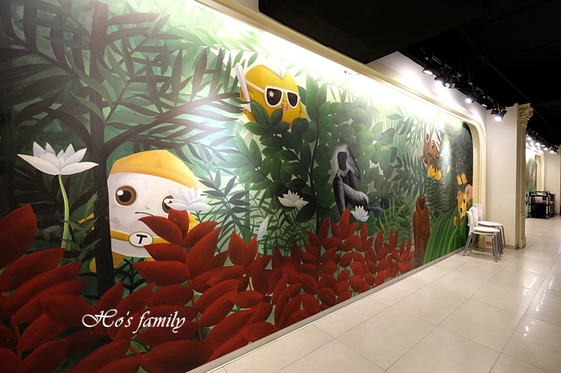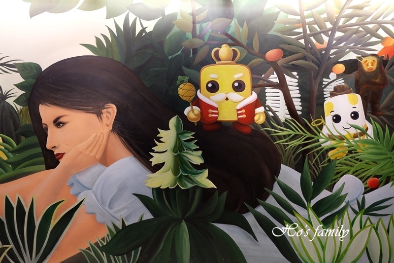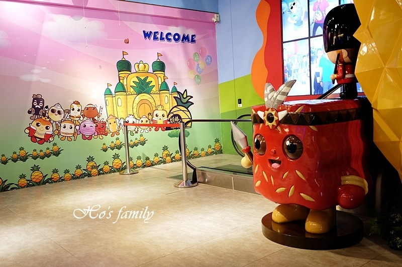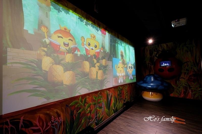 才剛經過一個歡樂的場面,旋即迎接大家的是鳳梨王國美味森林,奇妙夢幻的場景有著許多的不真實,美麗夜光壁畫發著光,給人無限想像空間。