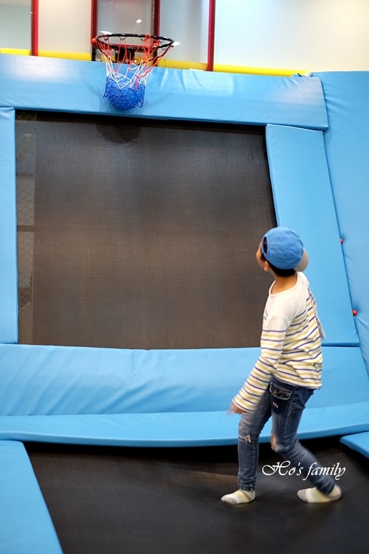 剛剛跳不夠,另外還有特設彈跳床區,而且有投籃、大球、攀岩與海綿球池可以玩!我們在Air-gene空氣基因彈翻健身育樂中心、追風奇幻島汐止遠雄旗艦店~海上奇幻漂流歷險玩過跳床投籃,Yo非常喜歡,ㄉㄨㄞㄉㄨㄞ跳個不停,彷彿要把所有精力都耗完,連女孩都愛得很,他和小菲開始設計遊戲規則:「從最後跳到最前再投籃才算過關喔!」兩個跳到最高點嗨到不行!