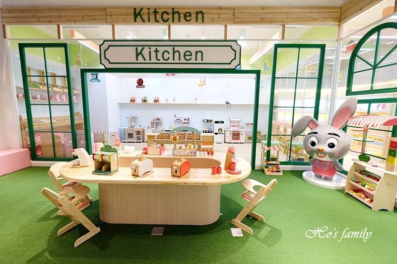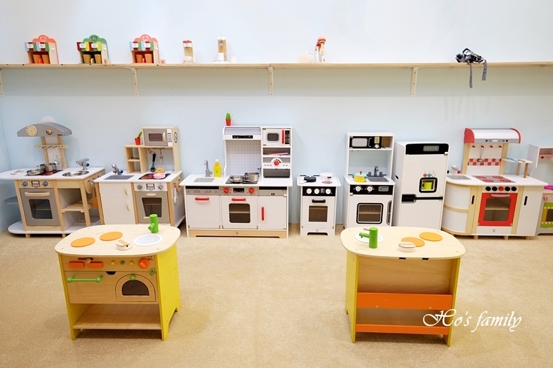 超卡哇依廚房也好好玩,鍋具、料理爐具、烤麵包機等,眾多家家酒組合一字排開,可以滿足小廚師的料理魂,也讓孩子們一起玩時學習「分享」的意義!