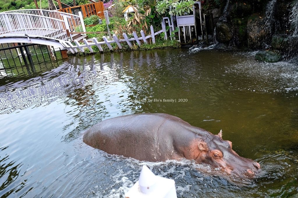 哈,是巨大的河馬!這裡的河馬好活躍,一下游泳一下上岸,還好沒有一直泡在水裡,讓大家都能一睹牠的風采。