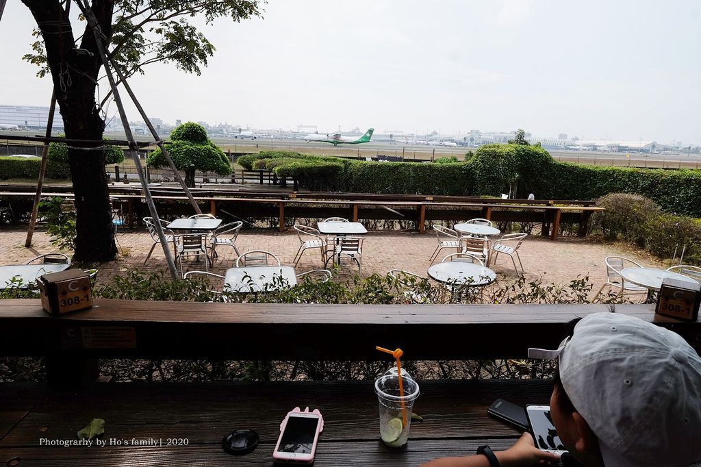 剛用完早餐過來,所以我們只點了飲料,坐在觀景第一排的王位看飛機起降非常震撼,但是由於新冠肺炎疫情的關係現在航班很少,要看到飛機起飛的時間要等比較久,每次一聽到有轟隆轟隆的聲音大家眼睛都亮了,紛紛準備好手機與相機捕捉難得的畫面!