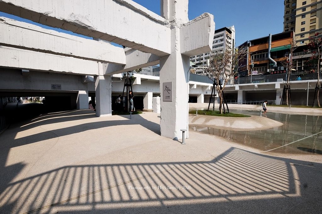 水景周邊有設計地下通廊步道可以在此休憩聊天,也能短暫遮一下豔陽。