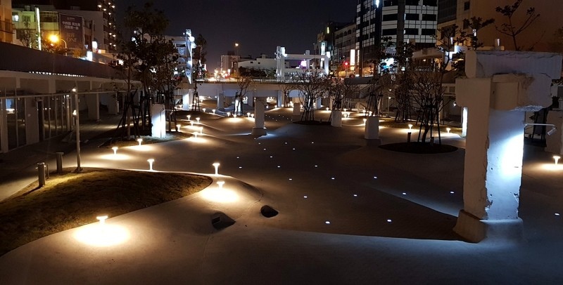 「河樂廣場」幾處皆設有階梯,走下去地下一樓的親水空間很方便。