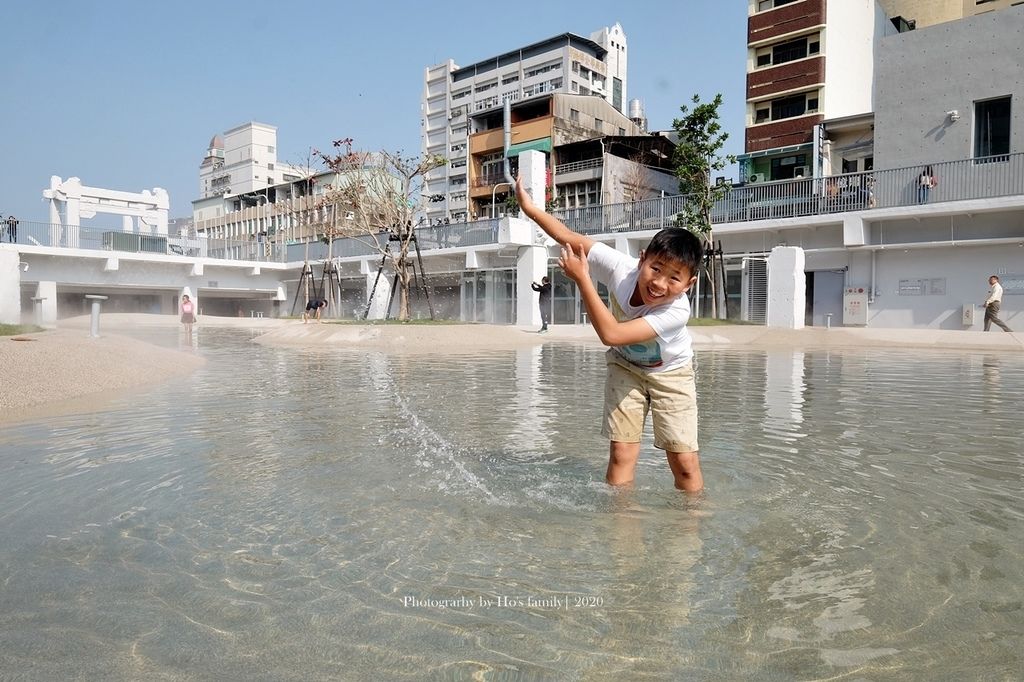 「河樂廣場」西起環河街、東至康樂街,因此取兩條街名的第一個字組合命名,音同「和樂」,也賦予「闔家歡樂」的意象。2020年3月7日正式開放,我們正好這一周來台南玩,特別來朝聖有「世界7大最期待公園」美譽的「河樂廣場」,南臺灣的天氣好宜人,北部還在穿薄長袖,南部已經可以穿短袖去玩水了!