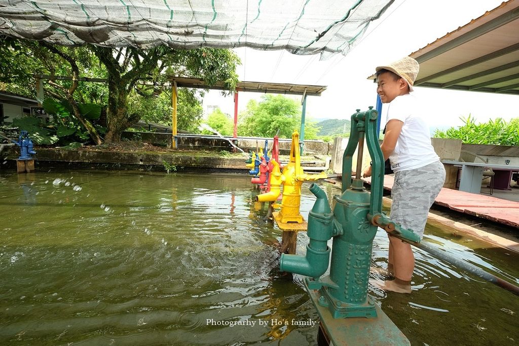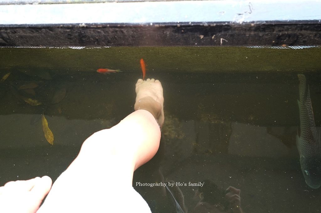 到宜蘭旅行,許多人都會體驗魚咬腳,沒想到勝洋水草休閒農場也有這種玩法!Yo沒體驗過,一看到時躍躍欲試!水很清涼又清澈,清晰可見水面魚群,小腳伸進去泡腳同時等魚兒游過來,小魚輕啄癢癢的,讓他一邊泡一邊笑!