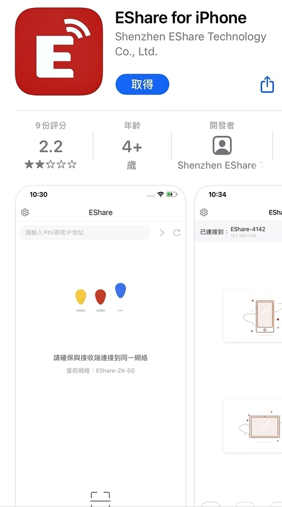 在手機中找到「Eshare 無線傳輸」APP,我們用的是iphone的。
