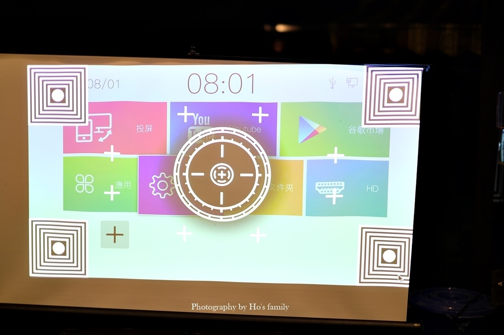 Wondermax AP3 Plus 投影機真的很SMART,會依靠鏡頭旁的距離感測器,運用紅外線來判別投影距離自動對焦,使用梯形校正、四角校正。