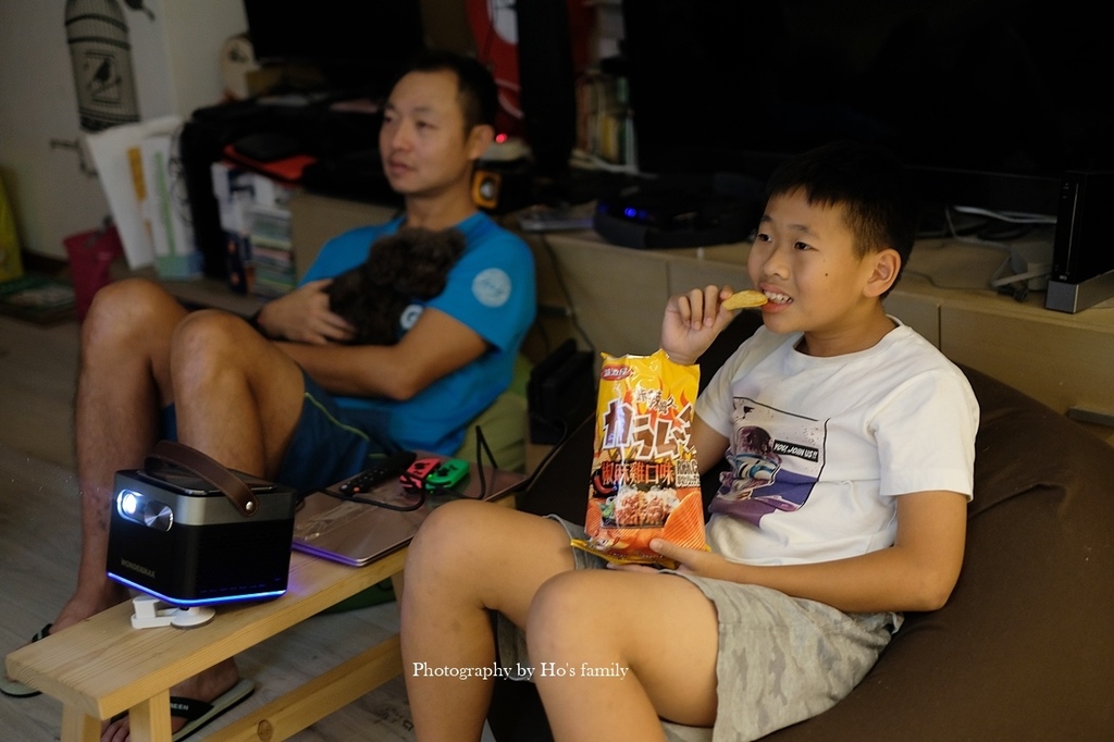 會想買投影機的另一個原因,就是因為我們常露營,白天讓孩子踢球抓昆蟲,晚上孩子們沒有娛樂,不希望他們玩手機,最佳娛樂就是飯後用投影機播電影!