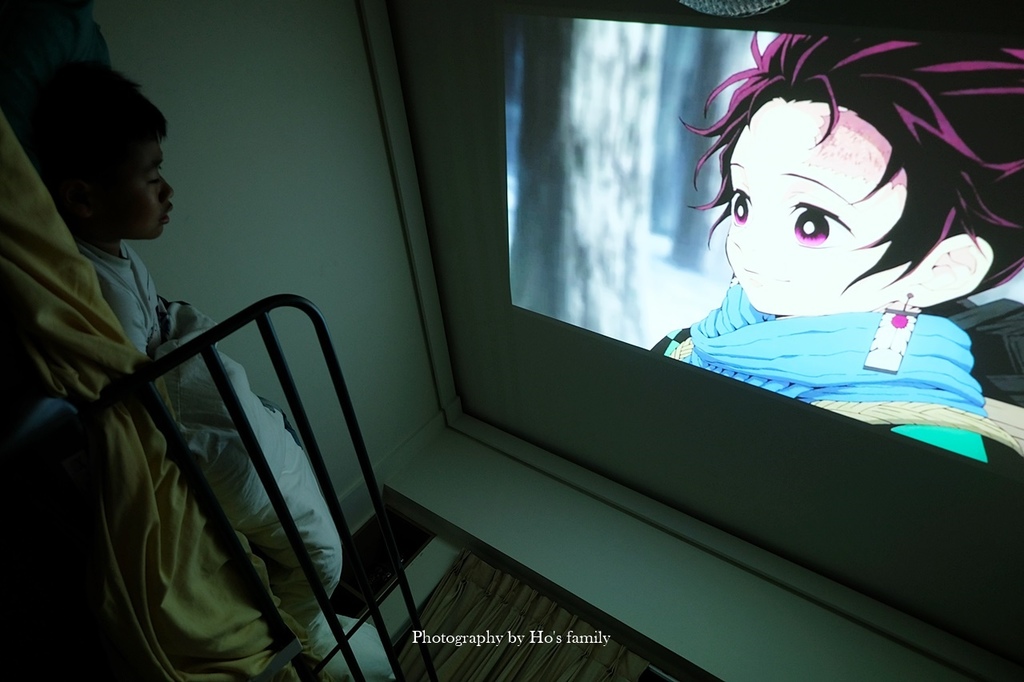 想要可以躺在床上看電影一直是我們買投影機的原因,如今終於圓夢了,這小孩實在太幸福了!