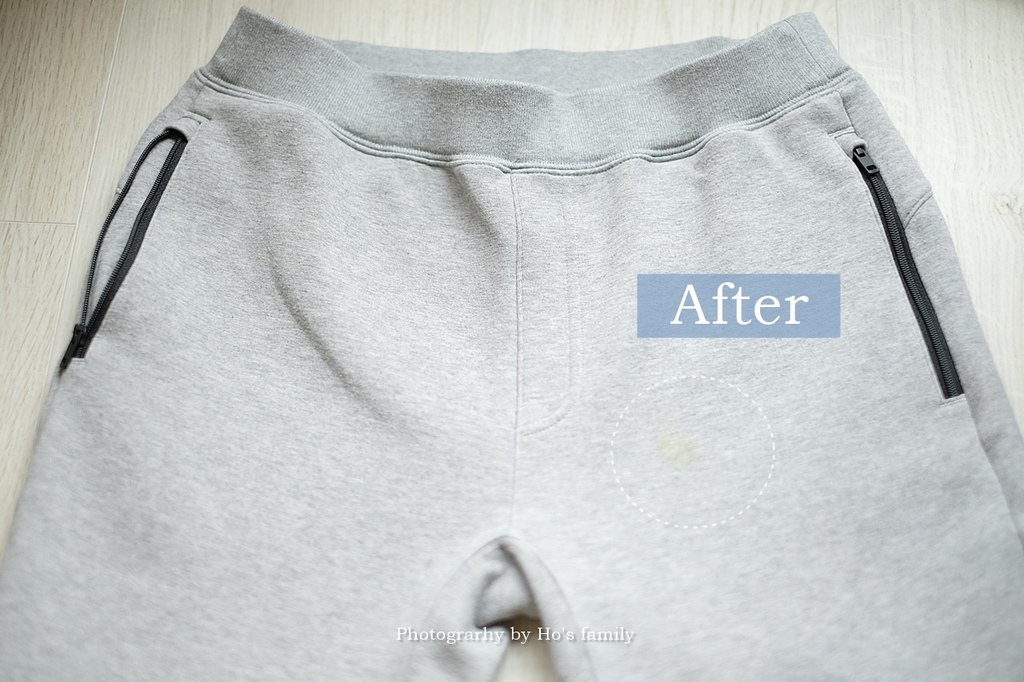 Yo之前吃咖哩沾到了褲子,洗完後顏色變淡了