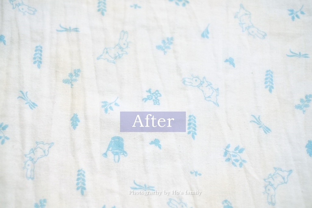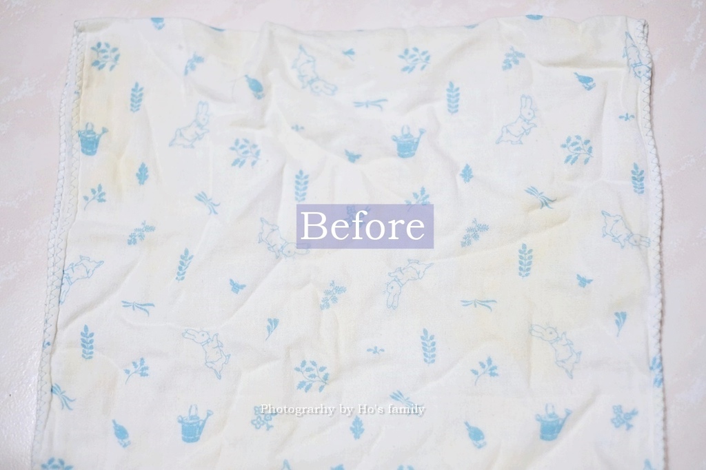 而洋洋喝ㄋㄟㄋㄟ用的手帕沾有許多奶垢,用了蒲公英環保超濃縮洗衣膠囊洗過後,顏色變淡很多,幾乎看不太到了ㄟ!