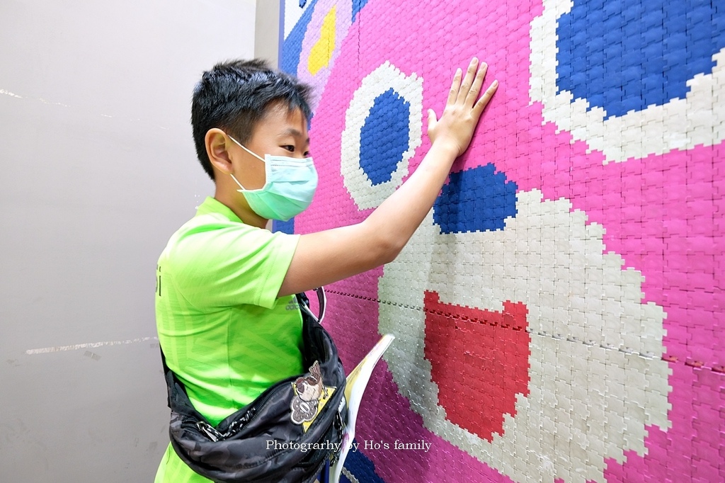 拍著拍著,從牆上的說明發現這面小熊來由不簡單,是由一萬片橡皮擦拼圖拼出來的!沒有仔細看真的看不出來,實在太壯觀了!