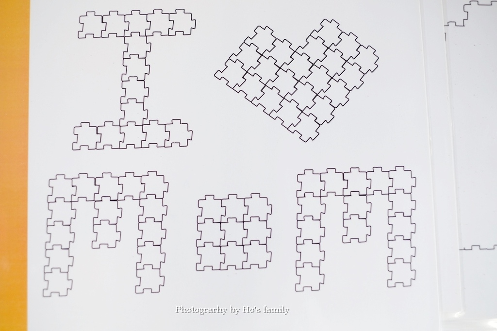 這實在太有趣了,Yo選了「愛心」圖案,我們合力拼出來,成了一幅「很有愛」的圖!