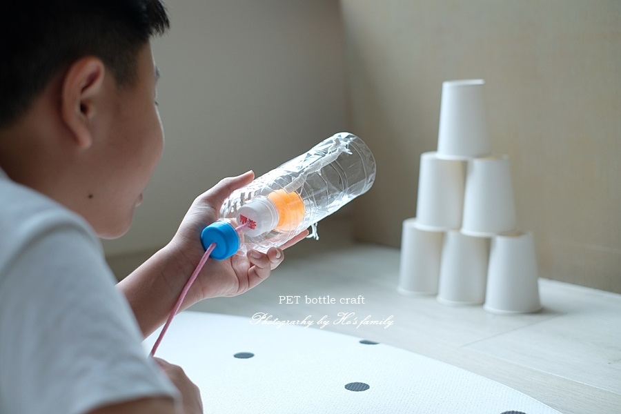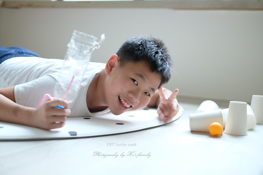 我們還全家比賽,看誰的紙杯倒最多,玩到最後屋頂都快掀起來了,哈哈,別看孩子小小的,他們可以鬼點子很多,拼命研究怎麼樣才可以命中率百分百,簡單好玩的小遊戲就能讓一家人玩得好過癮,這就是手作玩具帶給人的溫度,也因為如此讓我們樂於為孩子做玩具,孩子的笑容果然是爸媽努力最大的動力啊!