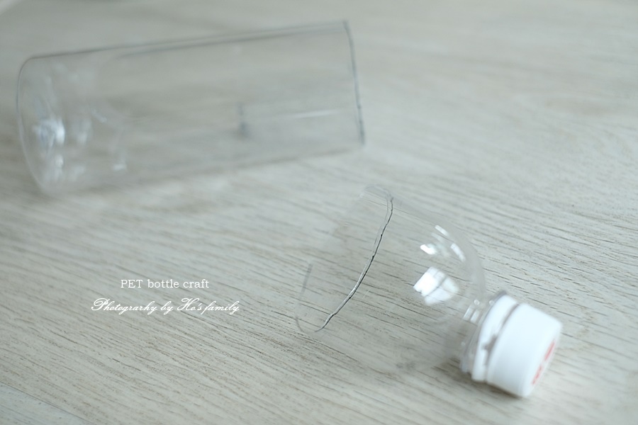 (6)另一個寶特瓶裁去上面的三分之二,留下底部。