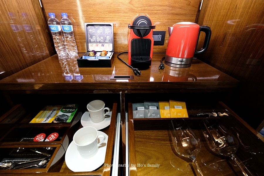 mini-bar供應膠囊咖啡、餅乾、果汁等,全是免費供應